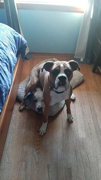 Charles Bennett, 65, of Hillsboro took this picture of Sam, a boxer, sitting on Lacode, a bulldog.