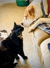 Judi Ronzio, 73, of High Ridge took this photo in May 2024 of Suzy, a 2-year-old tortoiseshell-patterned cat, and Scout, a 9-year-old mix. “Scout and Suzy have been besties ever since I brought Suzy, a stray kitten, home with me. The girls are great friends,” Judi said.