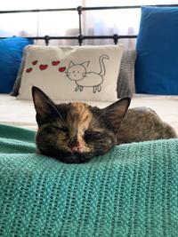 Kim Sculthorpe, 59, of Festus took this picture in September 2024 of BooBoo, her then 6-month-old tortoiseshell-patterned cat. “BooBoo is the sweetest kitty I’ve ever had, and she looks so precious relaxing on top of the lump under the covers, which happens to be her sister, Sammie,” Kim said.