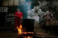 La cocinera María Torres, en el comedor social en el patio de la casa natal del fallecido futbolista Diego Maradona en Villa Fiorito, en la pr…