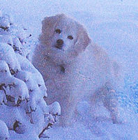 This is a picture of Angel from 2006, when she was about 5. She was an American Eskimo-cocker spaniel mix.