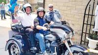 The Rev. Alexander Anderson, the pastor at St. Rose of Lima Catholic Church in De Soto, got his first ride on a motorcycle last month as part …