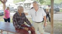 About 70 people recently gathered to dedicate a pavilion located in Charles A. Brown Park in Crystal City.