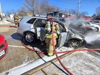 A vehicle caught fire in the parking area in front of De Soto Junior High School Thursday morning, Jan. 16. No one was injured, De Soto Fire C…