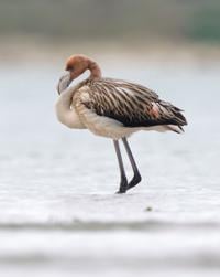 A flamingo, believed to be Frankie the flamingo who took flight from Paradise Park in Cornwall at the beginning of the month. (Mickaël Belliot…