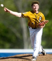 Matt Phillips, seen here pitching earlier this spring for Festus High School, handcuffed the House Springs lineup to help lift Festus Post 253…
