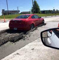 A woman drove a car into wet concrete Thursday morning (May 5) in the 1900 block of Richardson Road in Arnold, where a new section of the road…