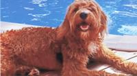 Nugget, a golden doodle, is pictured relaxing poolside in this July 23, 2017, photo taken at his home, said owner Monica Hewitt of Festus.