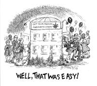 “Is this the weed line?” the woman walking up behind me asked. Turning around, I contained a laugh and gave her the only answer I could, “Yes.”