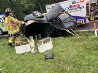 Alyssa Gray, 32, of Arnold was rescued by Rock Community Fire Protection District firefighters when her car overturned after running off Loned…