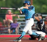 Shane Pollard slashes a run-scoring double for the Blazers in their 6-2 loss to the American National Eagles on June 25.