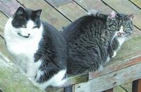 I took this picture of our outdoor cats Kit and Junior, both 8, at our home in March.