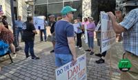 Williamsport, Pa. — Local residents and organizers with Action Together NEPA gathered outside 330 Pine Street on Friday to protest federal and state budget decisions and call for greater accountability from Congressman Dan Meuser.