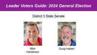Republican Mike Henderson and Democrat Doug Halbert are vying on Nov. 5 for the state Senate District 3 seat currently held by Elaine Gannon, …
