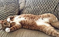 Min, formerly known as Menace, likes to lie around feeling the rays of the sun, her owner says.