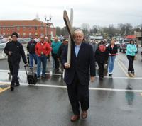Dozens braved gray, threatening skies to participate in the annual Good Friday Walk of the Cross processional that started at noon today (Apri…