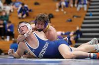It was a tough week for Wildcat senior state medalist Caden Gousetis at 165. After losing his first match of the season to Seckman’s Drake Jenkins at St. Charles West Jan. 13, Gousetis won by fall in 59 seconds in his first two matches at Zumwalt South. In the final against Troy Buchanan’s Mark Matschiner, Gousetis scored two takedowns and a reversal, but Matschiner escaped late for a 7-6 decision.