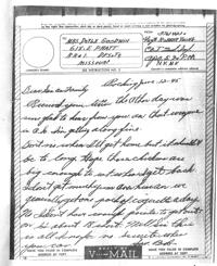A V-mail letter from Staff Sgt. Bob Young to his sister, Mrs. Doyle Goodwin, written in June 1945.
